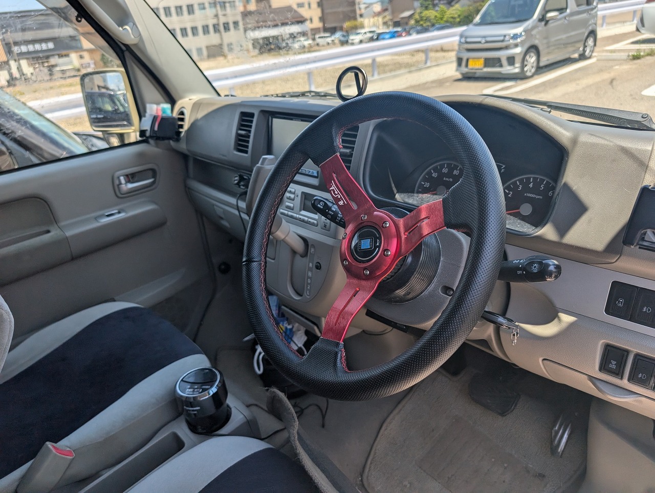 両側パワースライド車で内張類の状態が良く社外ステアリングに交換されています。
